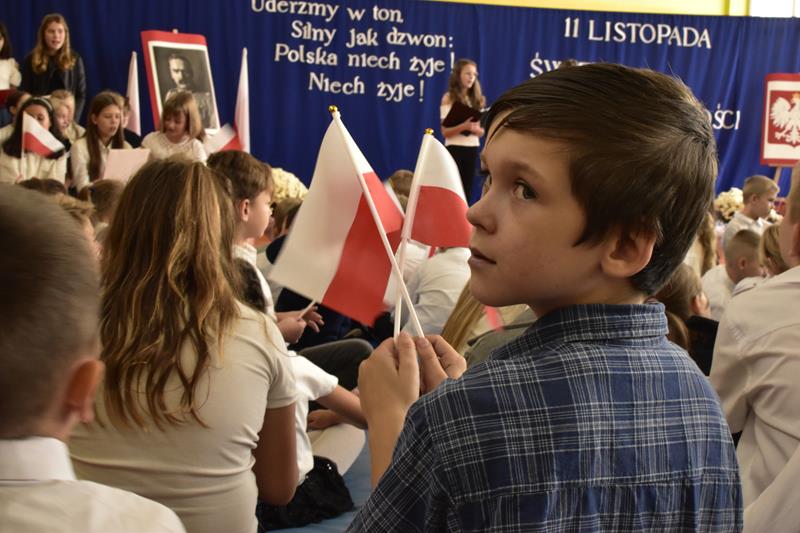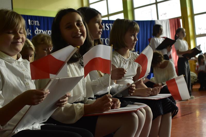 Święto Niepodległości w Dwudziestce obchodziliśmy podczas uroczystej akademii, którą przygotowały klasy 4a oraz 4b wraz z wychowawcami. Była to okazja do wspólnego świętowania z Radą Rodziców oraz członkami Rady Osiedla Chrobrego. Postawa naszych uczniów, stroje galowe oraz śpiewanie pieśni patriotycznych przygotowanych przez wszystkie klasy sprawiły, że udowodniliśmy po raz kolejny, że potrafimy wspólnie działać i współpracować. O godzinie 11.11 łącząc się z wszystkimi szkołami na terenie kraju, które biorą udział w projekcie "Szkoła do hymnu", zaśpiewalismy hymn Polski. Ten dzień zapamiętamy na długo.